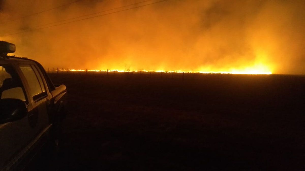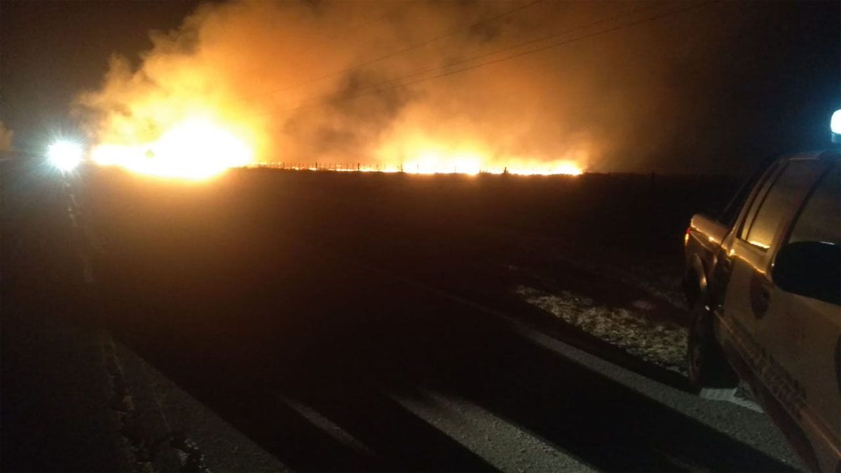Diez brigadistas del cuartel de Sampacho, con tres unidades, se movilizaron a la altura del kilómetro 635 ante el avance de las llamas en cercanías del arroyo Los Jagüeles.