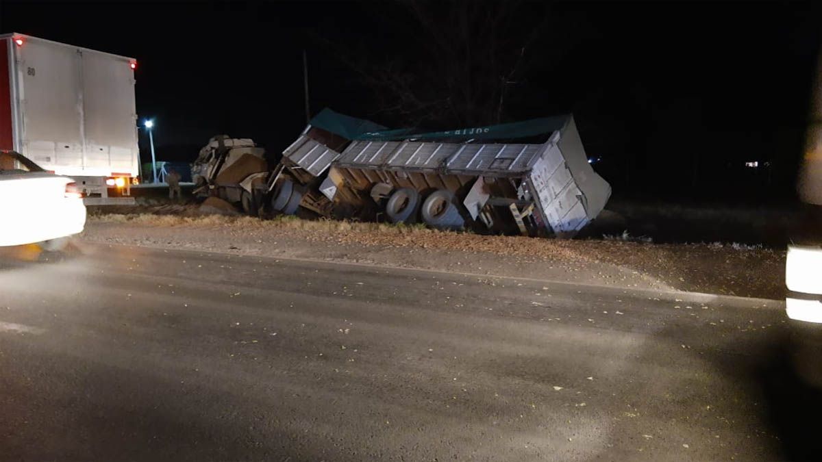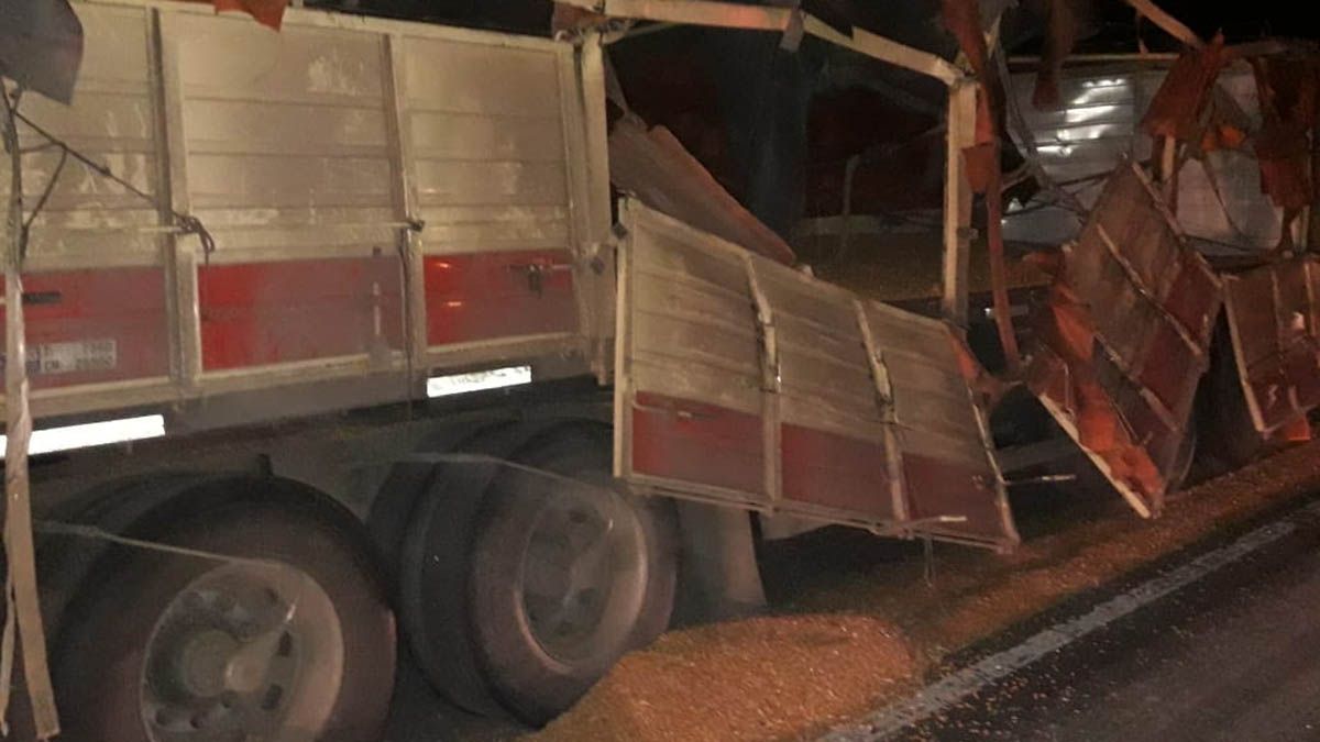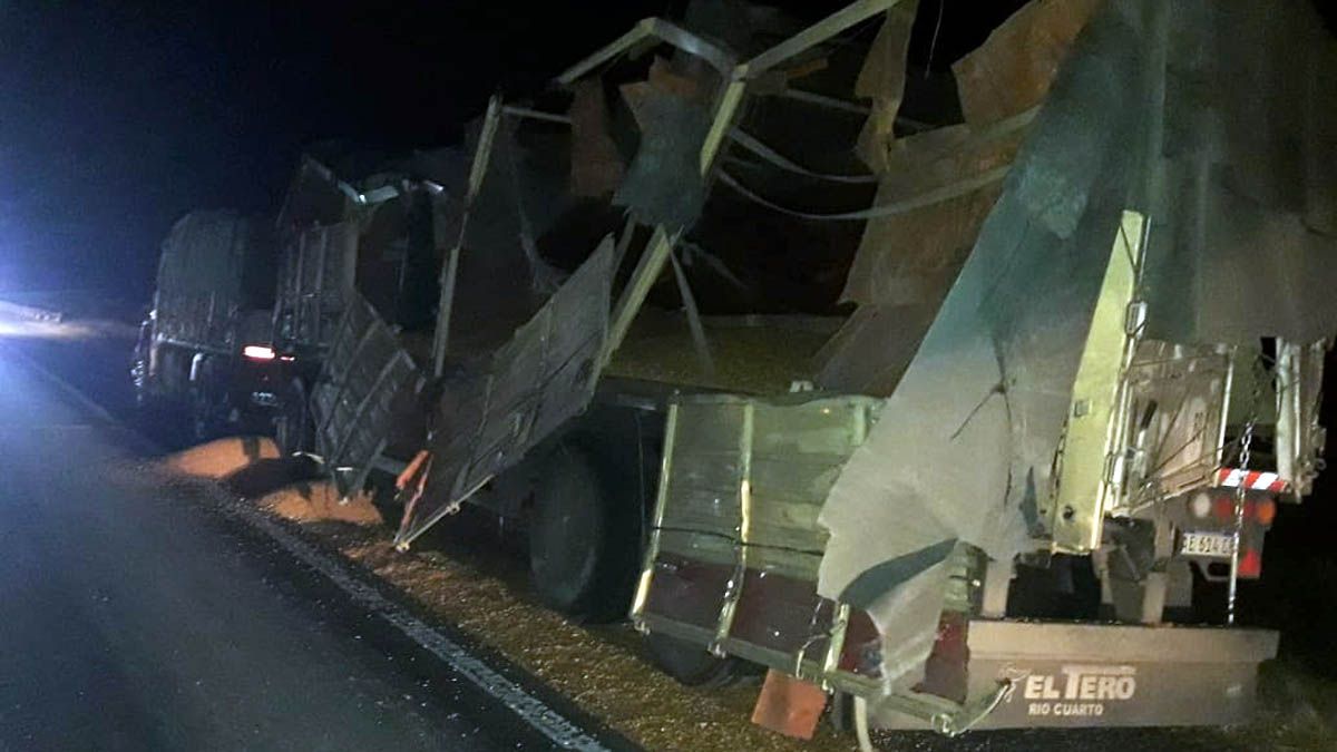 Un camión Ford Cargo con acoplado, cargado con maíz, impactó el lateral izquierdo de otro transporte que llevaba maní.