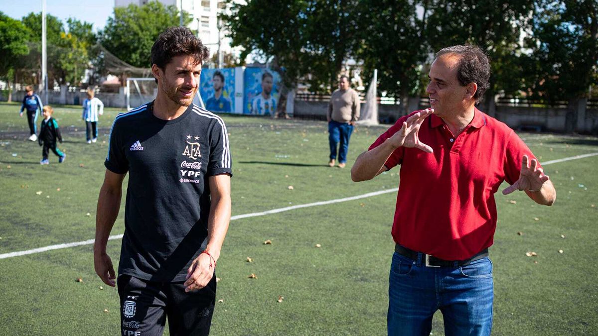 El Intendente Juan Manuel Llamosas y el campeón del mundo Pablo Aimar visitaron las instalaciones del renovado Centro 11, dónde se realizó una intervención muralística en homenaje al futbolista local e integrante del cuerpo técnico de la Selección Argentina que obtuvo la Copa del Mundo Qatar 2022.