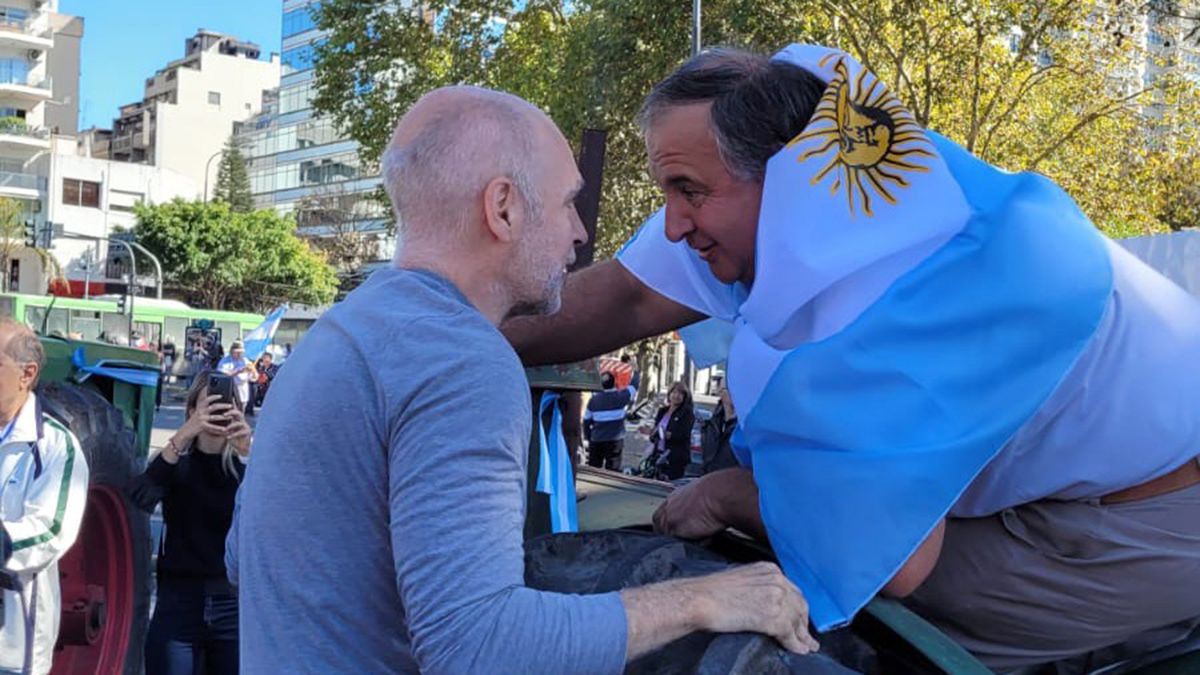 El jefe de Gobierno porteño, Horacio Rodríguez Larreta, participó hoy de la marcha del campo sobre la av. 9 de Julio que se moviliza hacia la Plaza de Mayo.