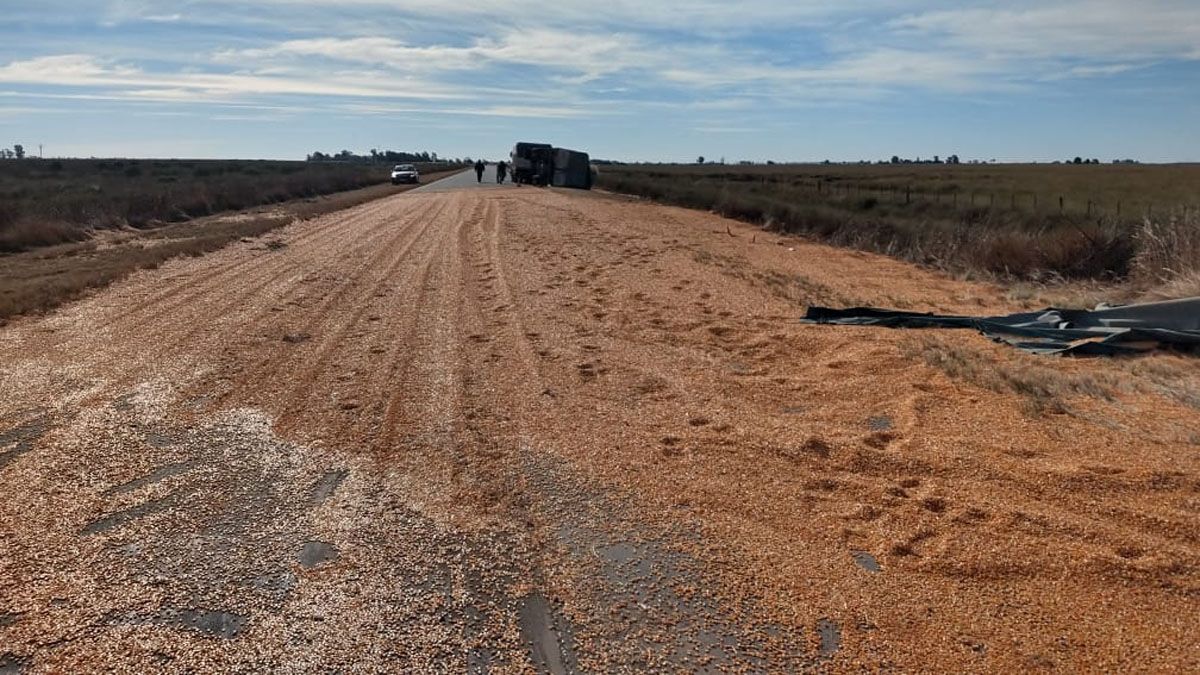 Alrededor de las 15, el semirremolque tumbó sobre una de las banquinas, a la altura del kilómetro 159, y el maíz obstruyó un sector de la carpeta asfáltica.