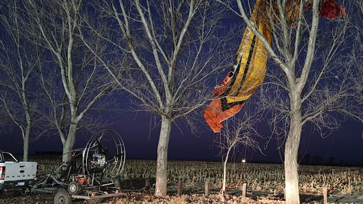Un parapente a motor terminó colgado en de los árboles en la zona rural de Huinca Renancó y el piloto logró salir ileso del hecho registrado en la tarde de este martes.
