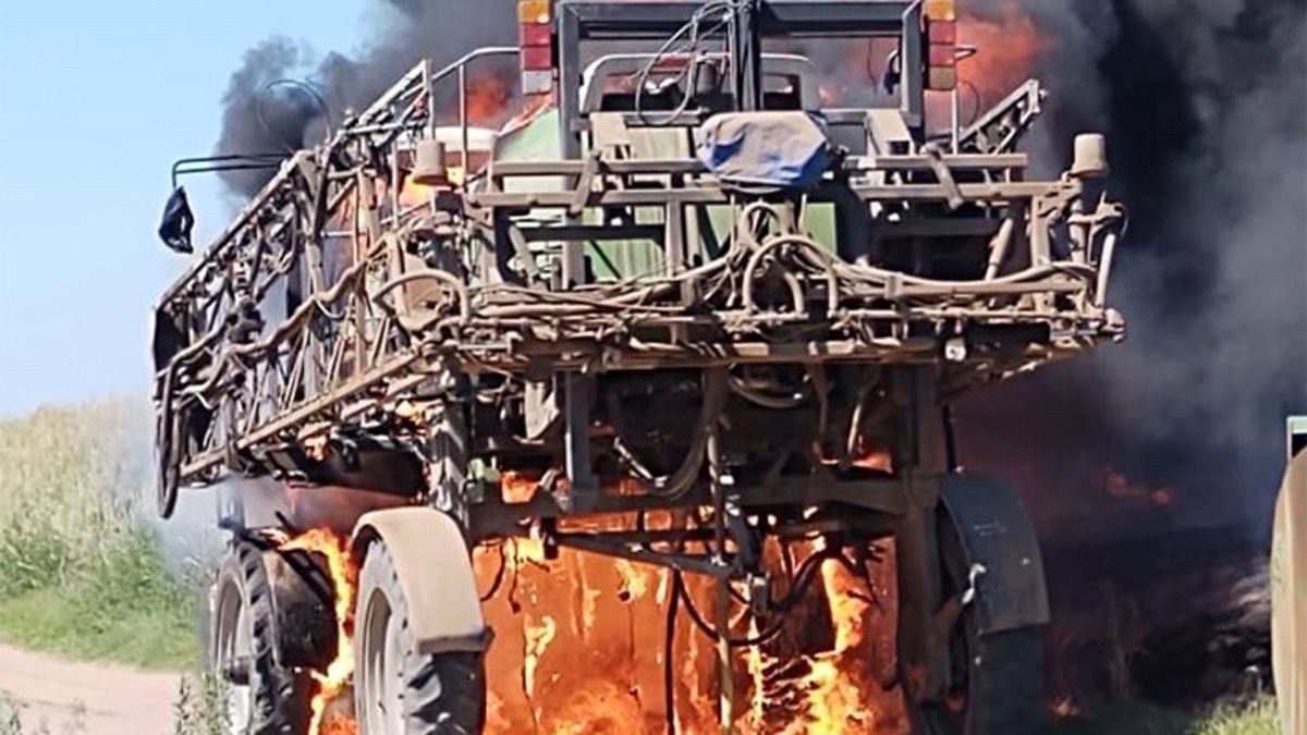 El fuego destruyó ayer por completo a una máquina fumigadora en un camino rural cerca de Huinca Renancó.