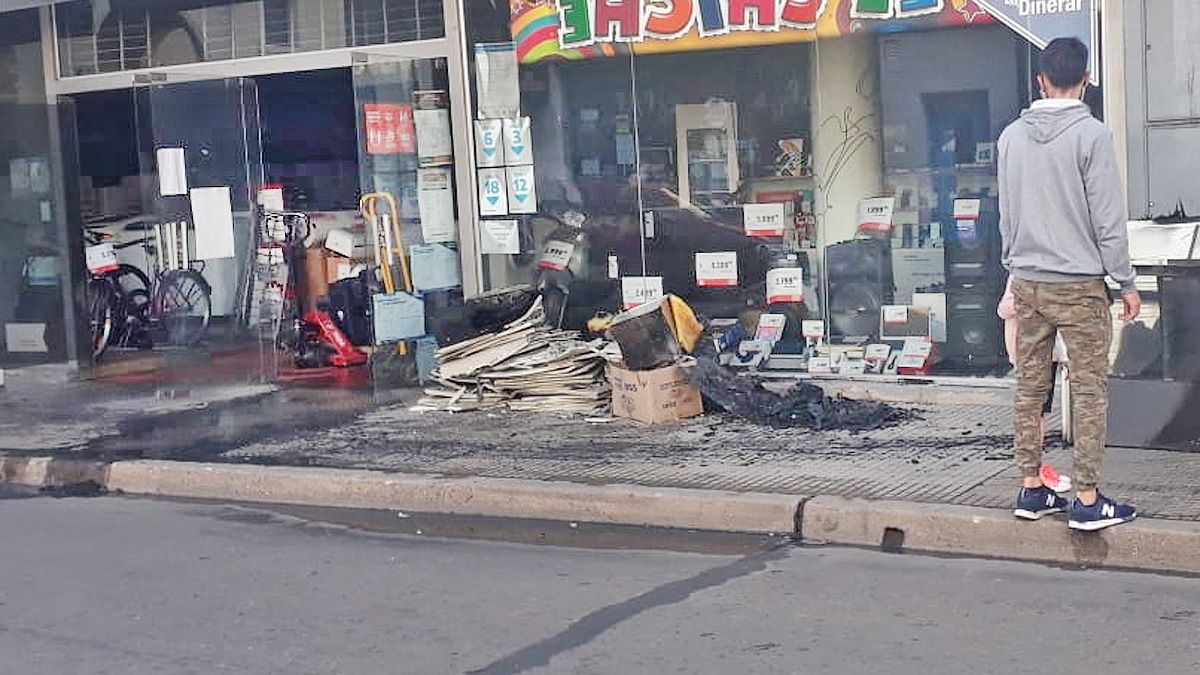 Por estas horas, trabajan en la limpieza del local debido a que el mismo ollín propiciado por el humo se diseminó por casi todo el interior alcanzando a otros productos.