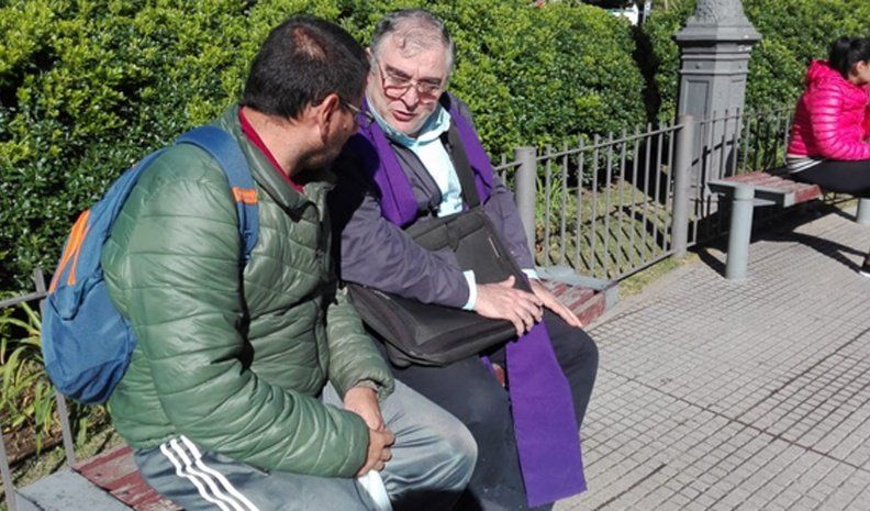 Una novedosa iniciativa llevan a cabo sacerdotes de cinco parroquias de la ciudad por estas horas en el centro. Los curas realizan confesiones en los bancos de plaza Roca. Gran número de fieles se convocó durante las primeras horas de la mañana para recibir el sacramento.