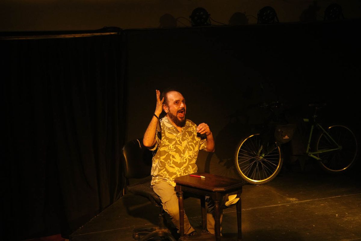 LA CRUZ CAÍDA.- En el marco del ciclo "A Puro Teatro 2022", subió a escena en el Centro Cultural Leonardo Favio, la obra escrita y dirigida por el riocuartense radicado en Córdoba Cristian Durban, con la actuación de Ariel Martínez Morán y la música original y músico en escena de Enrico Barbizi, por la Compañía Brigada Clandestina. Teatro en Acción.