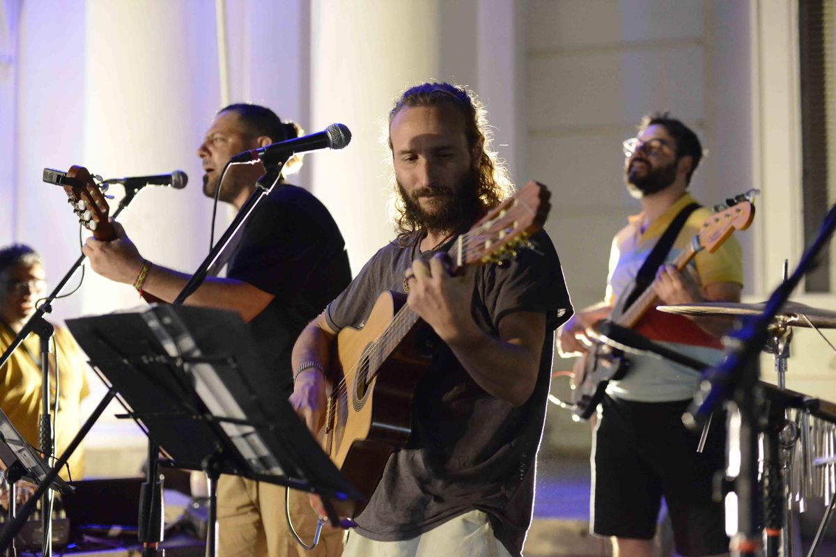 CUATRO ELEMENTOS PARA DESPEDIR EL AÑO.- Antenoche en el Espacio Cultural Arregui Cano del Palacio Municipal y en la Plaza de la Juventud, se llevó a cabo una actividad interdisciplinaria para cerrar el 2023. La muestra expuesta desde la semana pasada, Cuatro elementos, se completó con la pintura en vivo a cargo de los destacados artistas plásticos Carlos Márquez y Martín Lanfranco, el circo del Espacio Corpolina, la música del grupo folklórico Chacana y bailarines de tango.