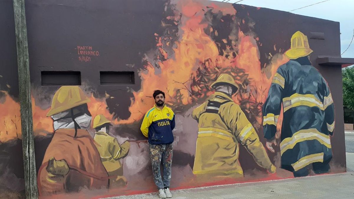 “Los chicos (bomberos) se emocionaron mucho cuando vieron el trabajo, les gustó muchísimo. Me agradecieron e incluso a la gente del pueblo le impactó el dibujo porque el lugar donde está es uno de los ingresos y se ve desde lejos. El mural tiene 5 metros de alto y 8 metros de largo. Fue muy bien recibido por todos”, dijo.