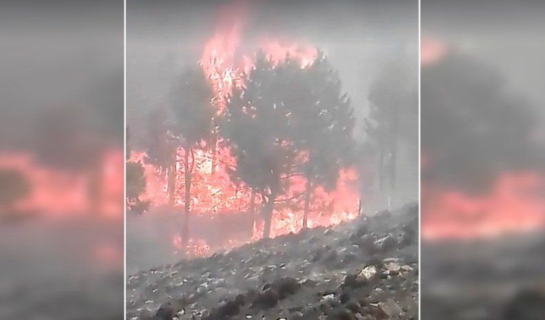 El fuego sigue devastando a la zona serrana próxima a Río de los Sauces. En las redes sociales distintos usuarios expresaron la angustia por el incendio iniciado desde el lunes y mostraron videos de cómo avanzaron las llamas en los últimos días en una plantación de pinos.