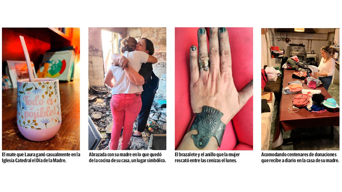 “Todo es posible!”. La leyenda se inscribe en un mate que Laura Mazzoni ganó “casi de rebote” cuando el pasado domingo, Día de la Madre, se acercó a la Iglesia Catedral en busca de la fuerza espiritual que la preparara para volver a su casa, convertida en cenizas.