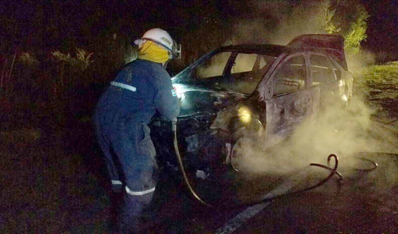El siniestro se registró alrededor de las 21.30 a la altura del paraje Carolina. Efectivos policiales hallaron un Ford Fiesta Max en llamas sobre una de las banquinas.