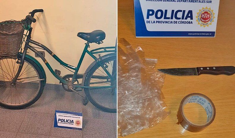 Además, en su poder se secuestró un cuchillo marca Tramontina de 25 centímetros de largo y mango de madera, cinta de embalar y guantes de Nylon.