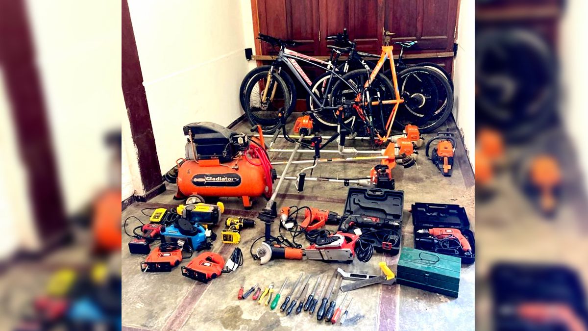 En el lugar secuestraron tres bicicletas, cuadros de bicicletas, cinco motoguadañas, un compresor, una motosierra, taladros, caladoras, amoladoras, una caja metálica con herramientas y prendas de vestir, entre otros elementos, se informó desde la jefatura de la Unidad Departamental.
