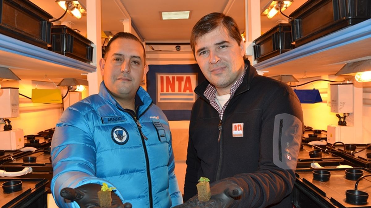 Desde la Base Marambio, Jorge Birgi –investigador del INTA Santa Cruz, quien se encuentra junto con su colega Boris Díaz en el módulo hidropónico a cargo del desarrollo de las plantas– destacó que “el trabajo es muy intenso, pero lo estamos viviendo con mucho entusiasmo porque estamos produciendo en las primeras plantas hortícolas en la Antártida Argentina”.