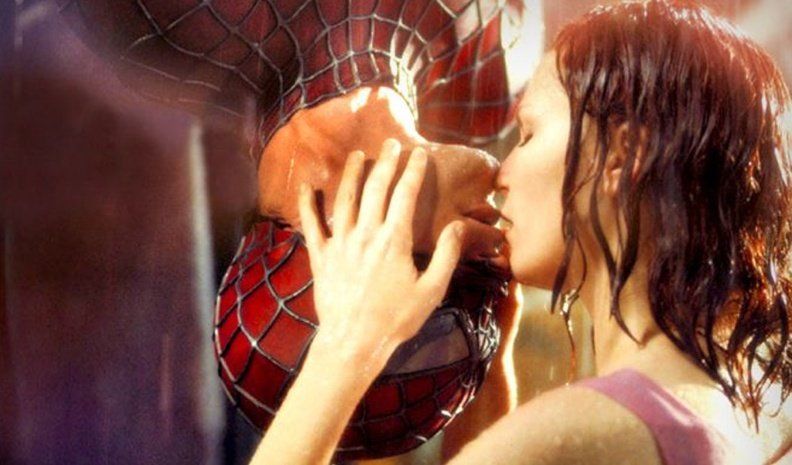DE SUPERHÉROES. Uno de esos besos inolvidables es el de El Hombre Araña colgado boca abajo en la versión de Spiderman del 2002. El es Tobey Maguire y la chica de sus sueños, Mary Jane es Kirsten Dunst. El beso ocurre bajo la lluvia, y después que él la rescata a ella de un grupo de matones. Mary Jane baja su máscara -colgado boca abajo- y le da un beso apasionado. Otro es el de Superman y Luisa Lane, en la versión de la película de los años ochenta, protagonizada por Margot Kidder y Christopher Reeve.