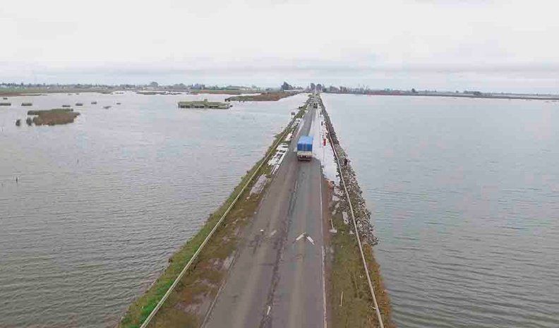 Los productores arienses advirtieron que, de continuar tales condiciones climáticas, el agua inundará la ruta y que podrían registrarse severos daños en el trazado, tal como ocurrió en la ruta internacional 7 a la altura de La Picasa, donde la inmensa laguna provocó el corte total de esa importante vía de comunicación.