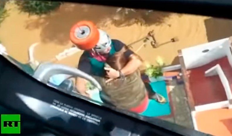 Un video publicado por RT en Español muestra una de las escenas dramáticas del temporal, con el rescate de una mujer a través de un helicóptero.