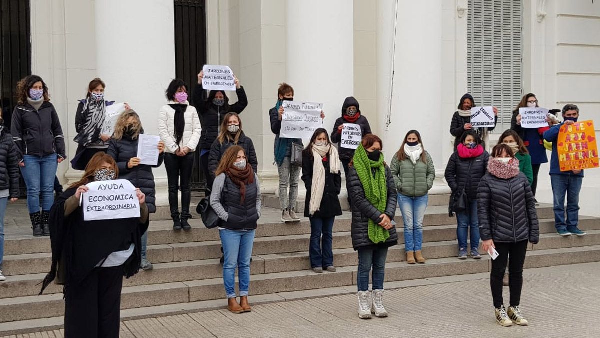 Con carteles que dan cuenta del pedido de declaración de la emergencia para los jardines maternales, resaltaron la necesidad de ayuda y de inclusión en los programas de asistencia estatal.