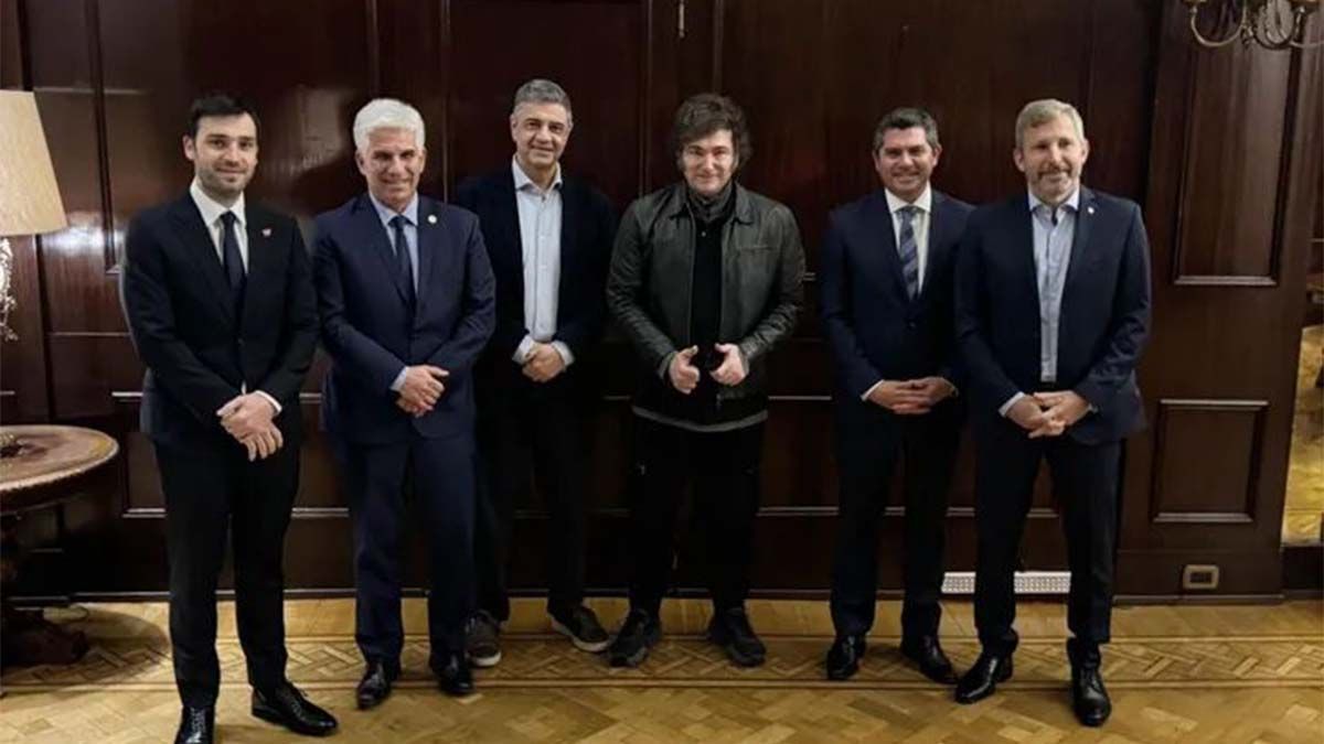 Los convocados fueron Jorge Macri (CABA), Rogelio Frigerio (Entre Ríos), Ignacio “Nacho” Torres (Chubut), del PRO, y Marcelo Orrego (San Juan), y Claudio Poggi (San Luis), cercanos al espacio, quienes desfilaron uno a uno por el Salón de los Bustos rumbo al Salón Eva Perón.
