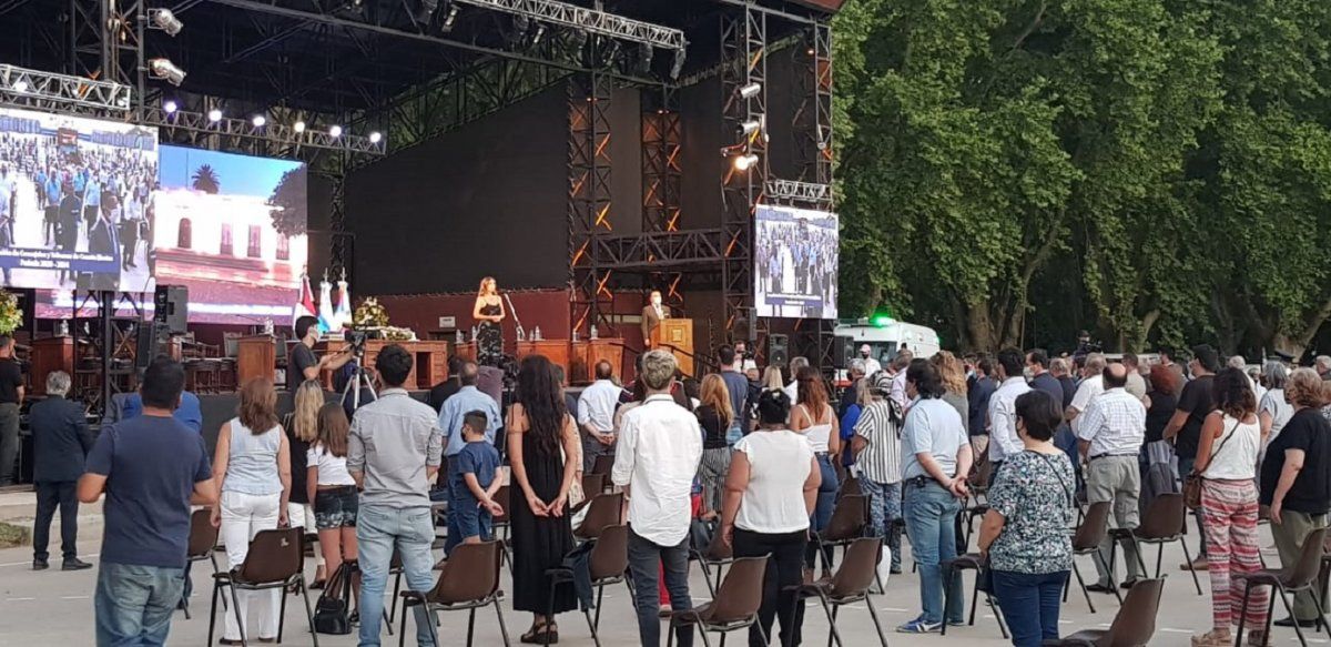 La elección del Anfiteatro en lugar del Teatro Municipal, donde tradicionalmente se hacen las asunciones de las autoridades locales, se debió a que, al ser un espacio al aire libre, es ideal para el cumplimiento de las medidas de bioseguridad para evitar la propagación de coronavirus.