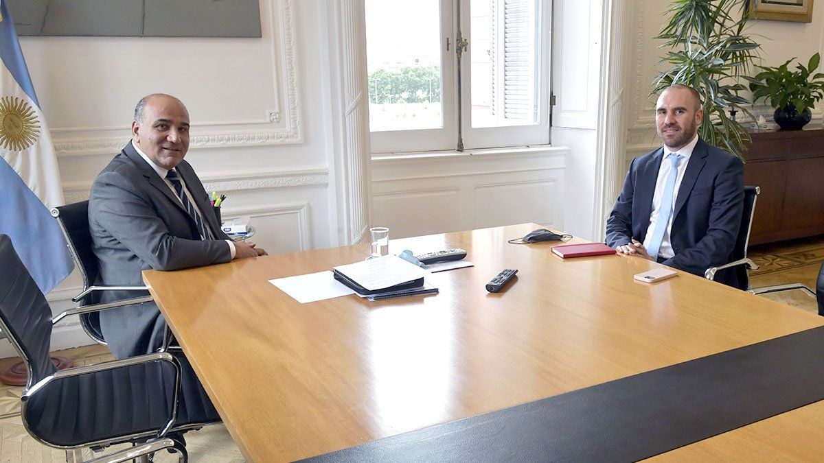 El jefe de Gabinete, Juan Manzur, recibió hoy al ministro de Economía, Martín Guzmán, con quien analizó las inversiones en materia de obra pública, educación, salud y tecnología, y la redefinición de parámetros que estaban contenidos en el presupuesto previsto para este año.