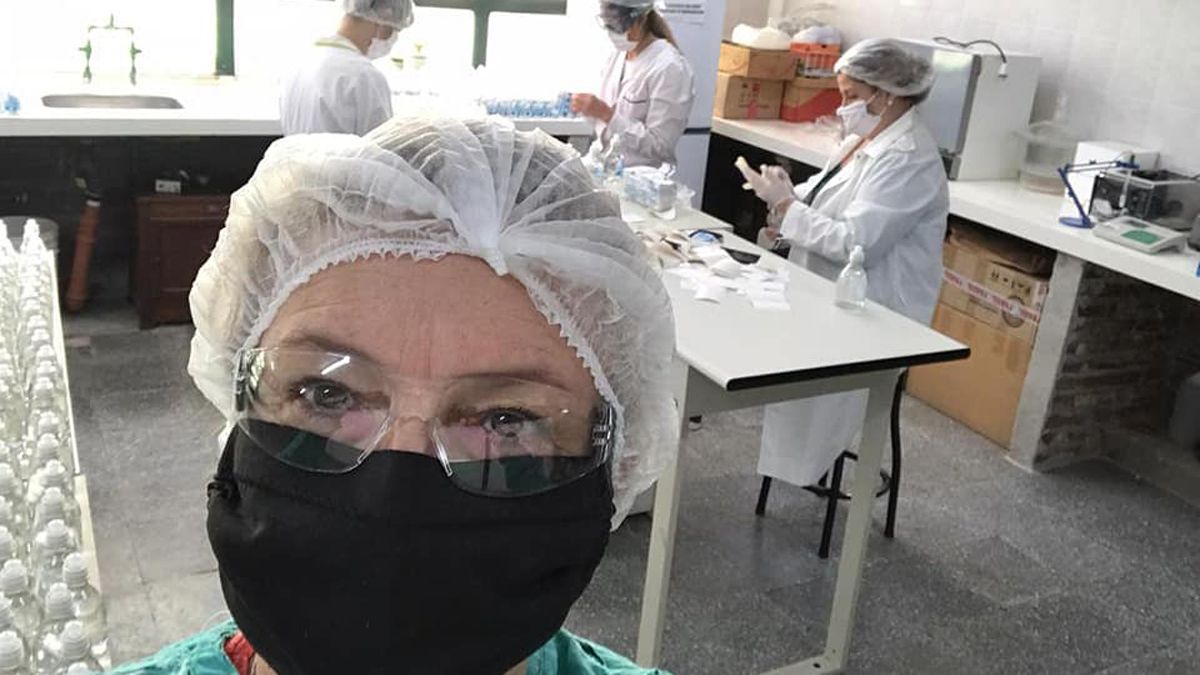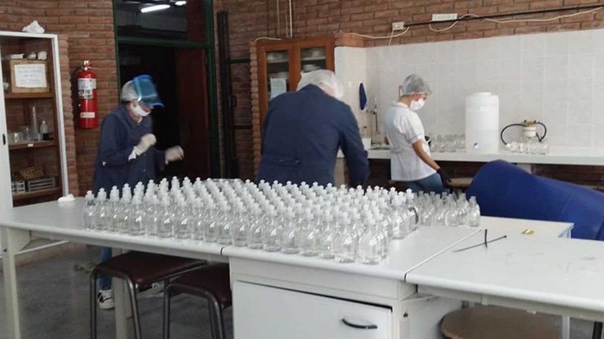 Otra de las tareas consistió en el fraccionamiento y envasado de alcohol donado por empresas cordobesas. Varias instituciones educativas de la región se sumaron a esta iniciativa de manera voluntaria.