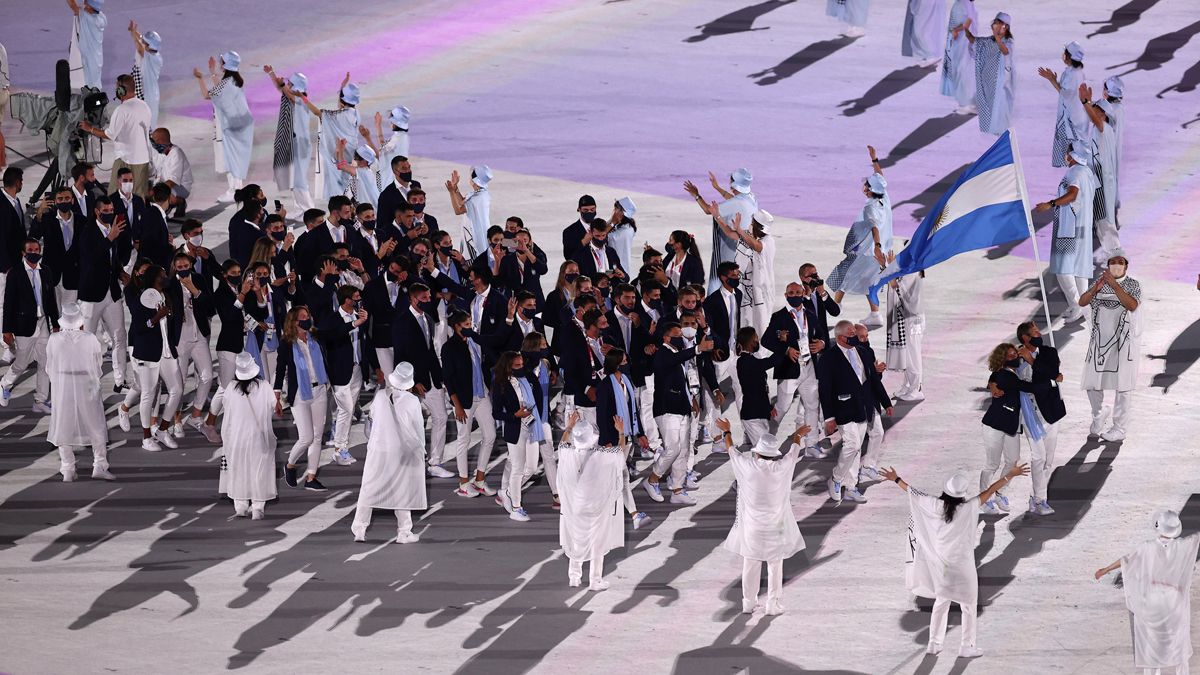 La delegación argentina, encabezada por los abanderados regatistas Santiago Lange y Cecilia Carranza Saroli quienes ganaron la presea dorada en Vela en Rio de Janiero 2016, desfiló hoy con entusiasmo en el Estadio Nacional de Tokio en la ceremonia Inaugural de los Juegos Olímpicos, evento que se realiza sin público para mitigar los efectos de la pandemia de coronavirus.