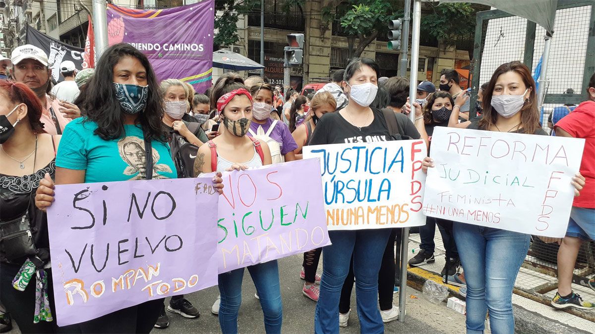 "Estamos cansadas de que nos maten todos los días", dijo a Télam Laura Granillo, del colectivo Las Rojas, mientras sostenía un cartel donde se leía "Ni una menos. Justicia por Úrsula" y marchaba hasta el edificio de los tribunales platenses, en las calles 7 y 58.
