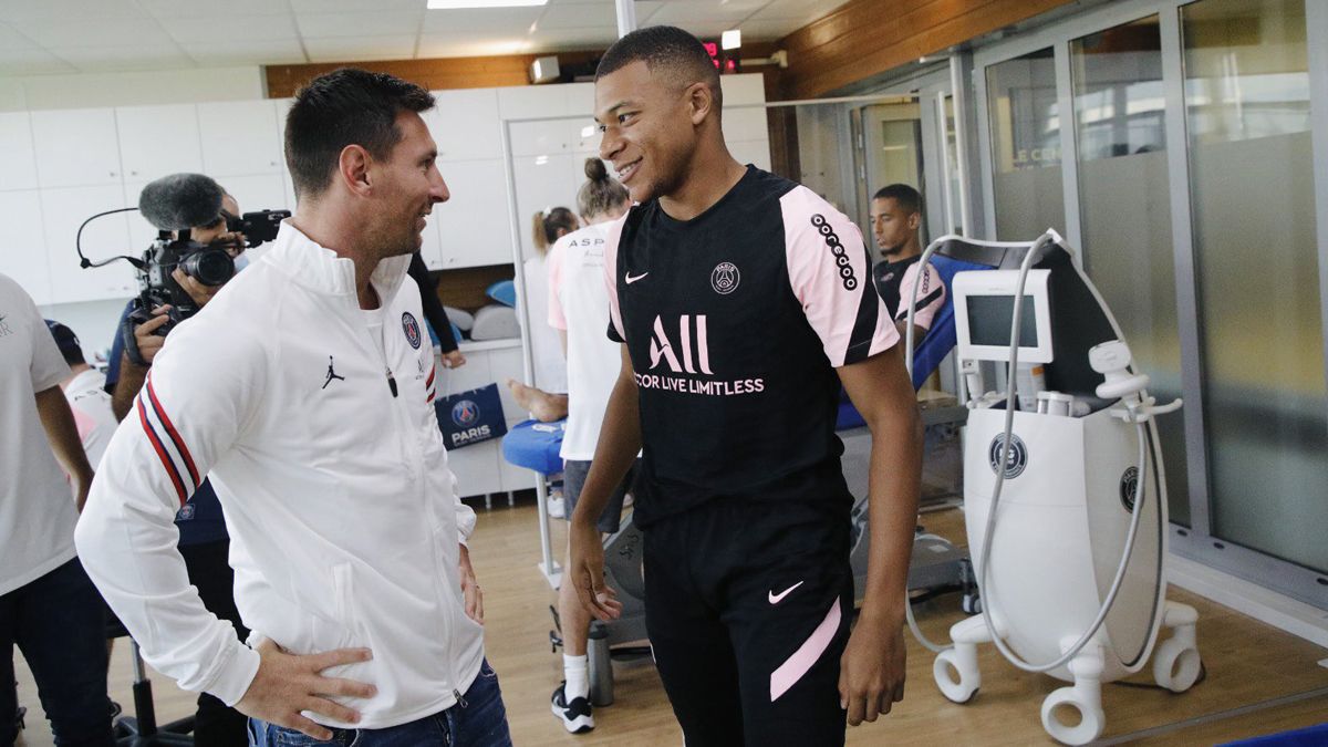 Kylian Mbappé, la joven estrella de París Saint Germain, le dio hoy una cálida bienvenida a su nuevo compañero Lionel Messi luego del primer entrenamiento.