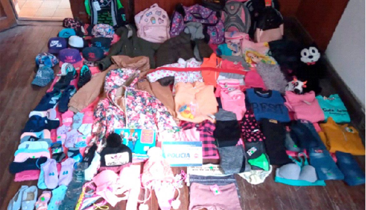 Además de secuestrar un dispositivo para retirar las alarmas, personal de la División Investigaciones de la Regional Juárez Celman incautaron gorras, zapatillas, frazadas, mochilas, bolsos, cintos, toallones y vestidos, entre otros elementos.