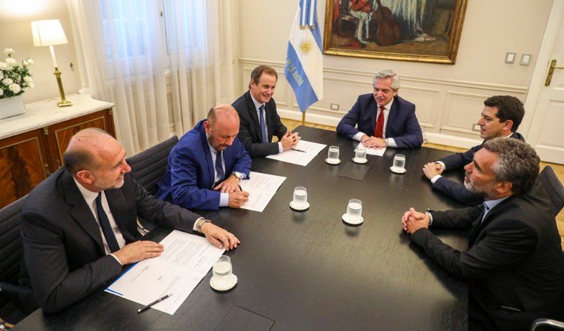 El presidente Alberto Fernández recibió ayer en la Casa Rosada a los gobernadores Omar Perotti (Santa Fe), Gustavo Bordet (Entre Ríos) y Gildo Insfrán (Formosa), con quienes acordó el pago de anticipos por un total de $ 1.396 millones que la Anses adeuda a esas provincias.