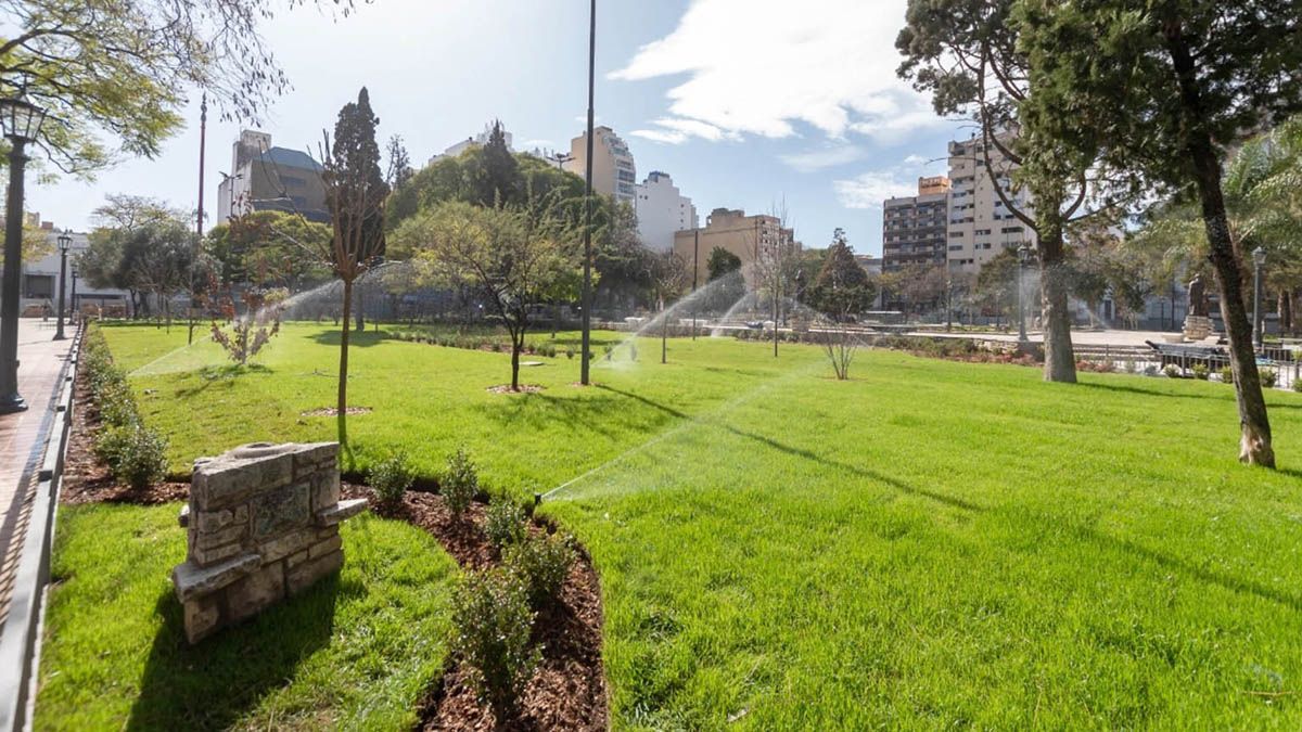 Un aspecto clave en este sentido es la instalación de sistemas de riego automatizado por aspersión y por goteo, que permitirá mantener estos espacios durante todo el año. Al mismo tiempo, se amplió el área destinada a recreación y esparcimiento mediante la consolidación de un “Patio de las Infancias” y un canil para perros que se extienden en el lateral sobre calle Rodríguez Peña.