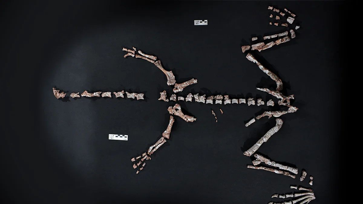 Los restos fósiles que se encontraron son una parte del cráneo, extremidades anteriores y posteriormente completos, y una serie vertebral completa hasta la cola, según informó el organismo en su página oficial.