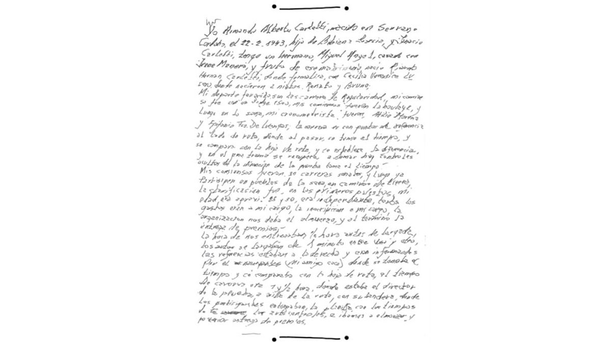 “Yo participé una vez y me entusiasmé, todos los fines de semana corría una competencia. Ahora quisiera que todos los domingos haya una carrera de regularidad”, dijo Carletti recordando sus primeras competencias en 1970, aproximadamente.