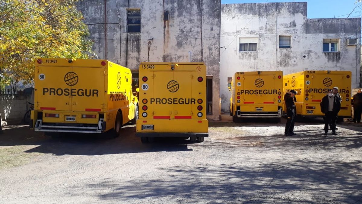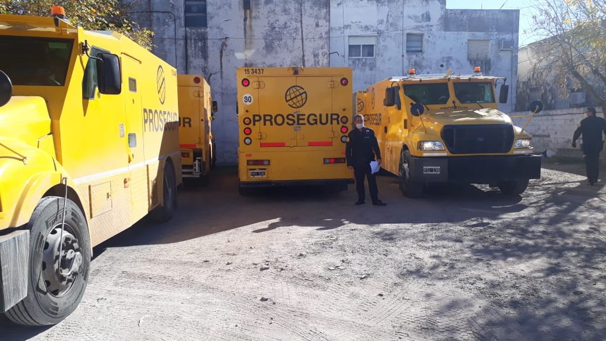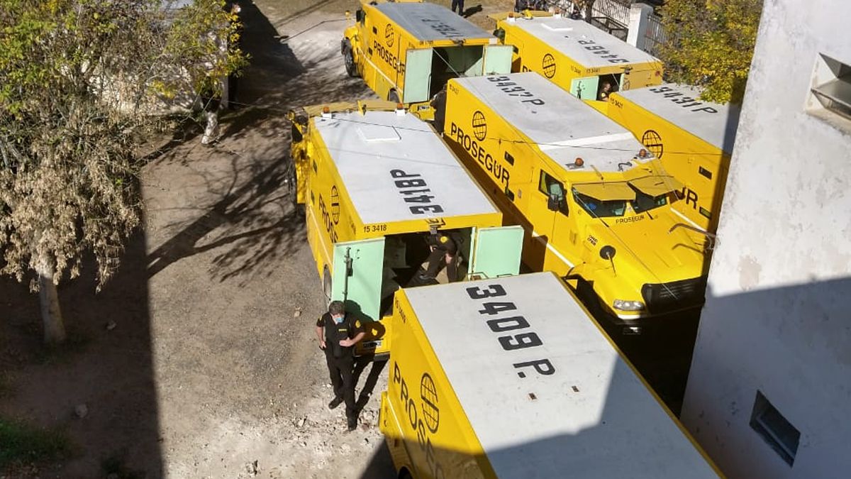 Ocho camiones fueron los que arribaron al patio de la sede Departamental Roque Sáenz Peña. Cuatro arribaron con el dinero desde Capital Federal y otros cuatro llegaron desde la provincia de San Juan para retirar los valores.
