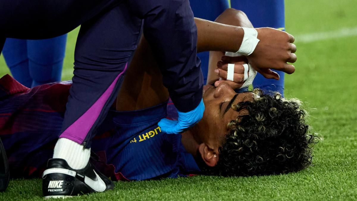 Cerca del final del primer tiempo, la joven estrella se metió en el área a pura gambeta, fue derribado por una fuerte infracción de Yoel Lago por el que el árbitro José Luis Munuera Montero sancionó penal. El encargado de ejecutar fue el propio Lamine, que la cruzó y convirtió. Sin embargo, su reacción fue la que preocupó a todos.