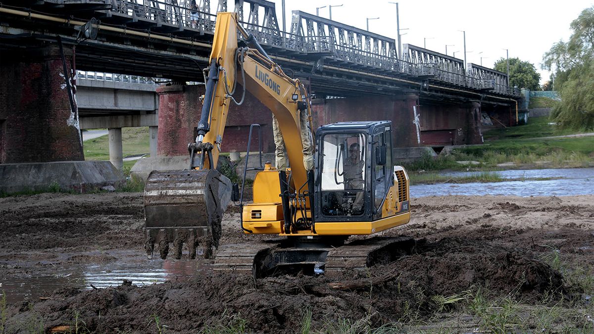 Los trabajos con la retroexcavadora continuarán en la jornada de hoy y se espera que el sábado se inflen los gomones para que se forme el espejo de agua debajo del puente Carretero.