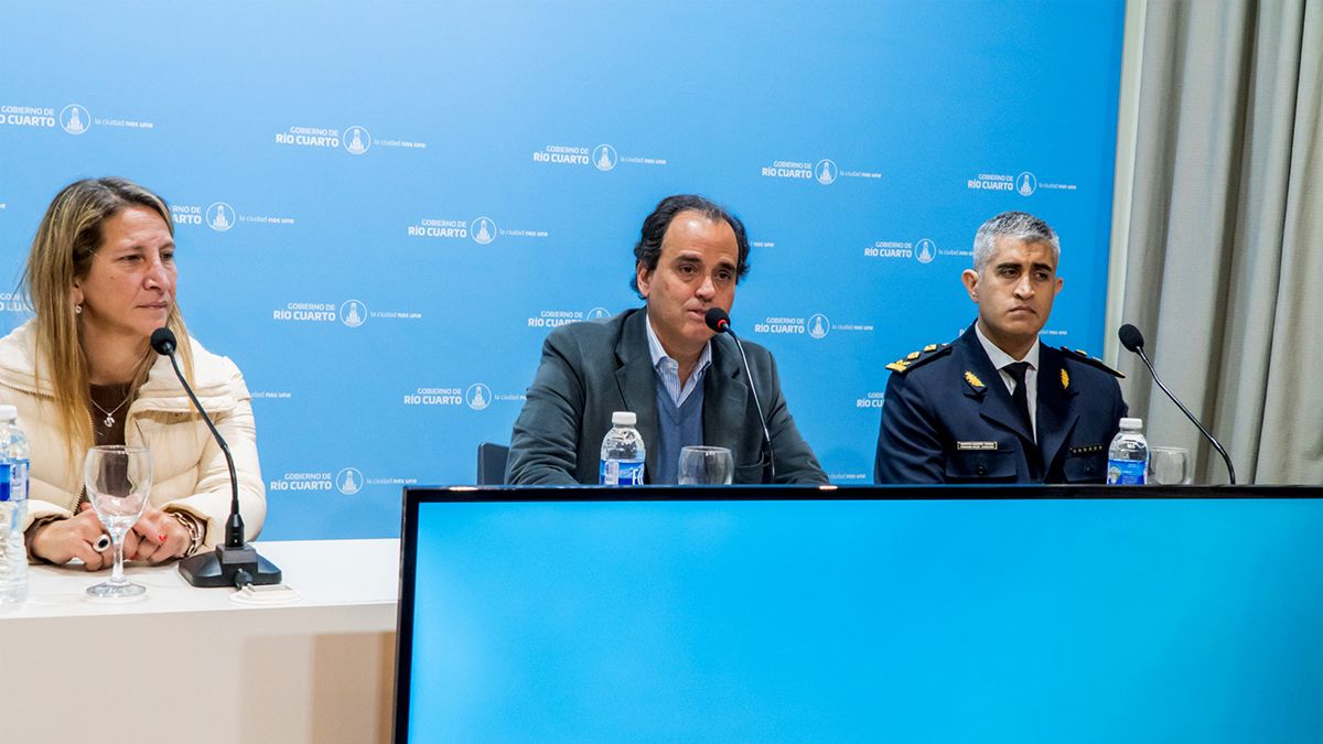 En la rueda de prensa, estuvieron presentes el jefe de la Policía de Río Cuarto, Agustín Torres, y la directora general del Centro Cívico local, Samantha David, además de funcionarios del gabinete.