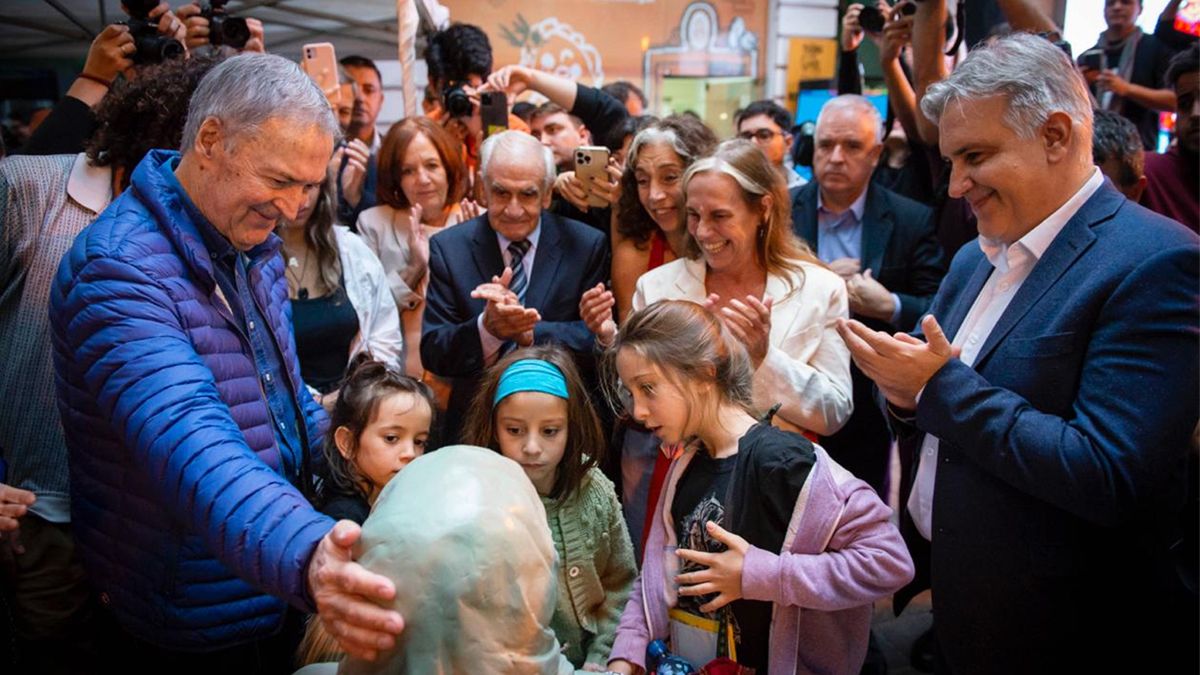 Juntos. El gobernador Martín Llaryora y el exmandatario cordobés Juan Schiaretti participaron ayer de la inauguración de la obra plástica que conmemora a la dirigente de Abuelas de Plaza de Mayo, Sonia Torres. Es la primera vez que Llaryora y Schiaretti aparecen públicamente tras el recambio de autoridades en diciembre pasado.