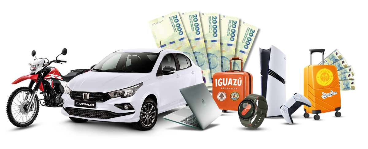 Además, se entregarán autos Fiat Cronos, producidos en Córdoba 0 km, motos Honda , Apple MacBook Air, Play Stations y viajes.