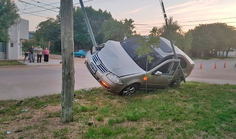 El siniestro se registró alrededor de las 6 cuando el joven conductor de un automóvil Volkswagen Bora perdió el control de la unidad, subió a la vereda y terminó con su auto enredado en los tensores de un poste de luz.