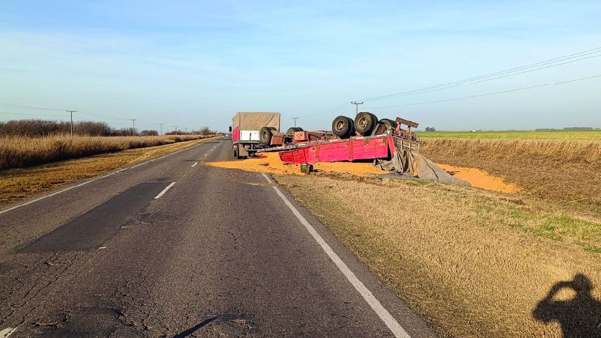 Por la tarde, cerca de las 18, un camión con acoplado volcó en Ruta Provincial N° 24 kilómetro 49, en cercanías al ingreso a la localidad de Adelia María