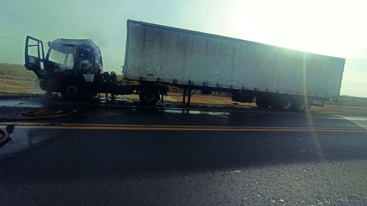 En la mañana de este lunes, alrededor de las 10, un camión que transportaba telas se incendió en la Ruta Nacional N° 7 a la altura del kilómetro 594, en proximidades a la localidad de Vicuña Mackenna.