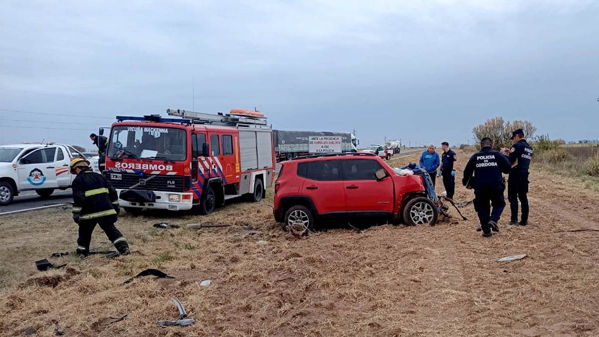 El conductor de la camioneta que se desplazaba de este a oeste falleció en el lugar del choque, mientras que la mujer sufrió lesiones que motivaron su asistencia en el lugar y fue trasladada hasta el Hospital Enrique Carrozzi de Vicuña Mackenna y luego al Hospital de nuestra ciudad con un fuerte traumatismo de cráneo.