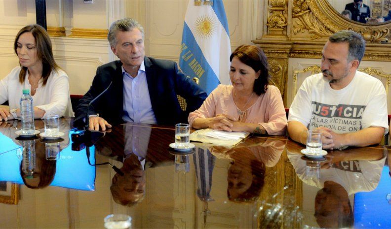 En el encuentro realizado en el Salón Eva Perón participaron además la gobernadora bonaerense, María Eugenia Vidal, y el secretario de Derechos Humanos, Claudio Avruj, y allí Macri saludó personalmente a los 45 familiares de las víctimas mortales y a uno de los sobrevivientes de aquel episodio.