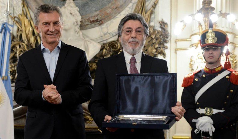 El Presidente ingresó al Salón Blanco junto al homenajeado, en medio de un fuerte aplauso a Abad, quien recibió de manos de Macri una placa recordatoria en presencia de su sucesor, Leandro Cuccioli.