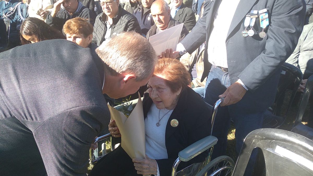 En el acto realizado este miércoles en nuestra ciudad por los 43 años de la Guerra de Malvinas se vivió un momento muy especial cuando autoridades municipales reconocieron a las mamás de los ex combatientes de Malvinas.