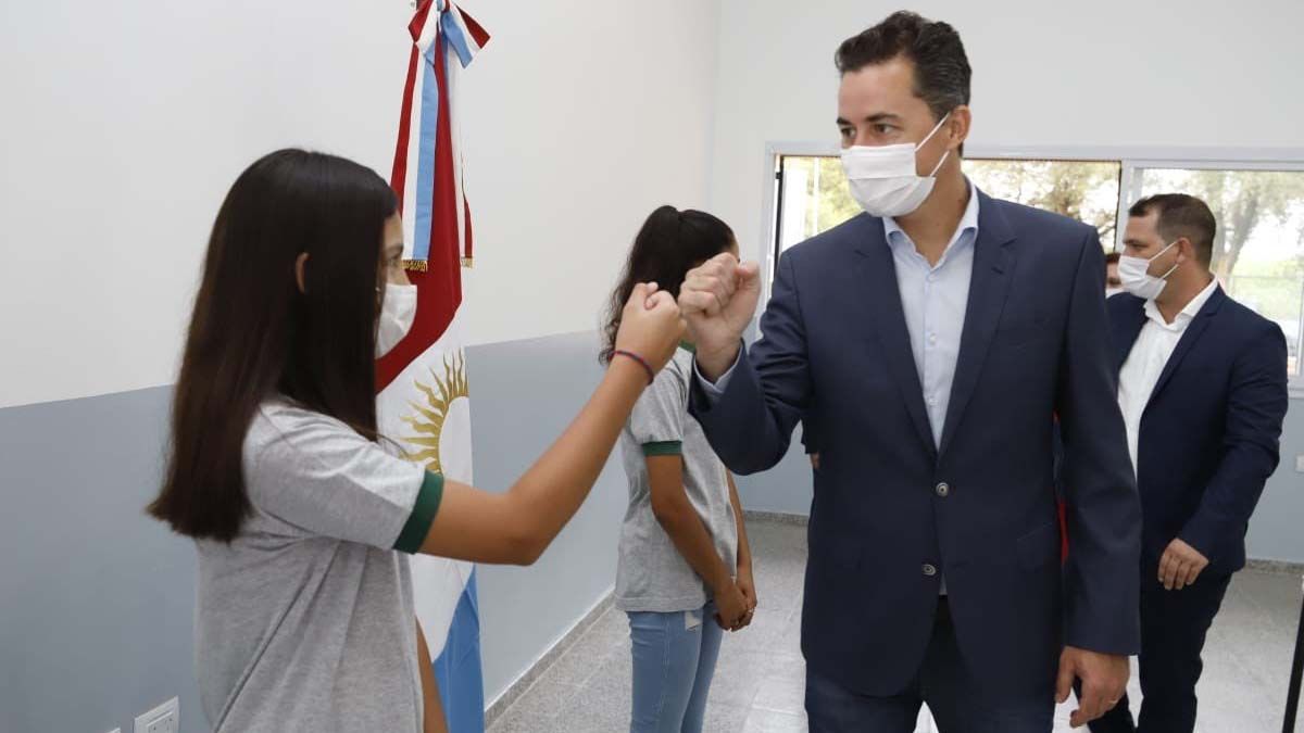 "Tenemos una enorme alegría, es un día muy especial porque nuevamente estamos retornando a las clases presenciales y queremos agradecer enormemente a todos los docentes, a todos los alumnos y fundamentalmente a todas las mamás y todos los papás que en todo este transcurso de la pandemia han venido acompañando al sistema educativo para seguir con la educación de nuestros hijos", expresó Calvo tras el acto en las nuevas instalaciones del Ipem 305 de la localidad de Costa Sacate.