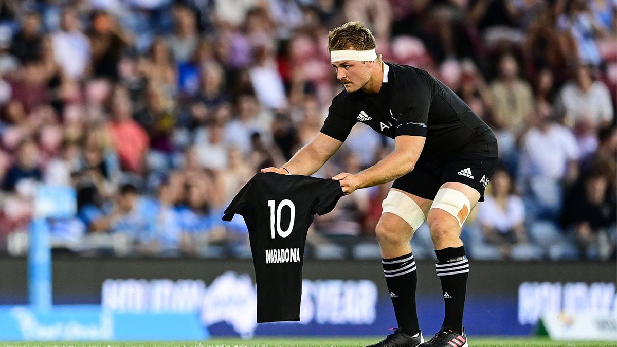 En ese contexto, previo a la tradicional danza se vivió un emotivo momento en el Mc Donald's Jone Stadium, de Newcastle, cuando el capitán de los All Blacks, Sam Cane, se dirigió hacia la formación del equipo argentino y apoyó sobre el césped una camiseta del equipo neozelandés con el número 10 y el nombre de Maradona.
