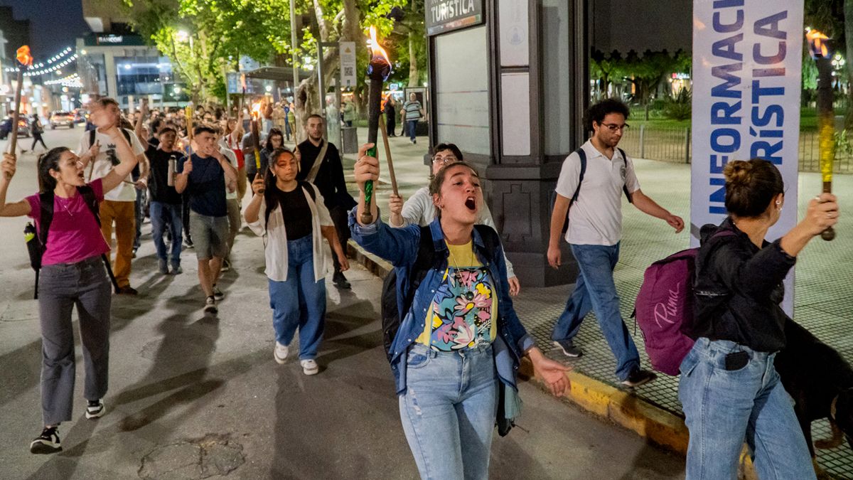 En horas de la tarde, una columna de estudiantes marchó por la Plaza en defensa de la universidad pública, con cánticos en contra del Gobierno.